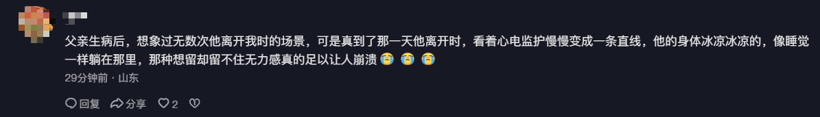 这段视频引发了不少网友的共情,“经历过亲人离世的无力感才能感同身受。”