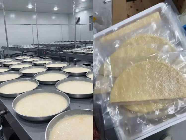 除此之外,郭凯说,奶皮子涨价还有两个原因。其一,最近奶皮子爆火,乳制品行业的厂家都需要牛奶,奶源价格上涨;其二,奶皮子的制作成本和制作周期比较长,8斤牛奶才能出1斤奶皮子。“早上把牛奶倒到烤盘里面,经过小火慢煮,把水分烤干,牛奶上面会凝结出一层奶皮子,烤8小时,奶皮子才可以被提出来,提出来之后,还需要风干晾晒,再进行冷冻,最后才是达到出品的奶皮子。