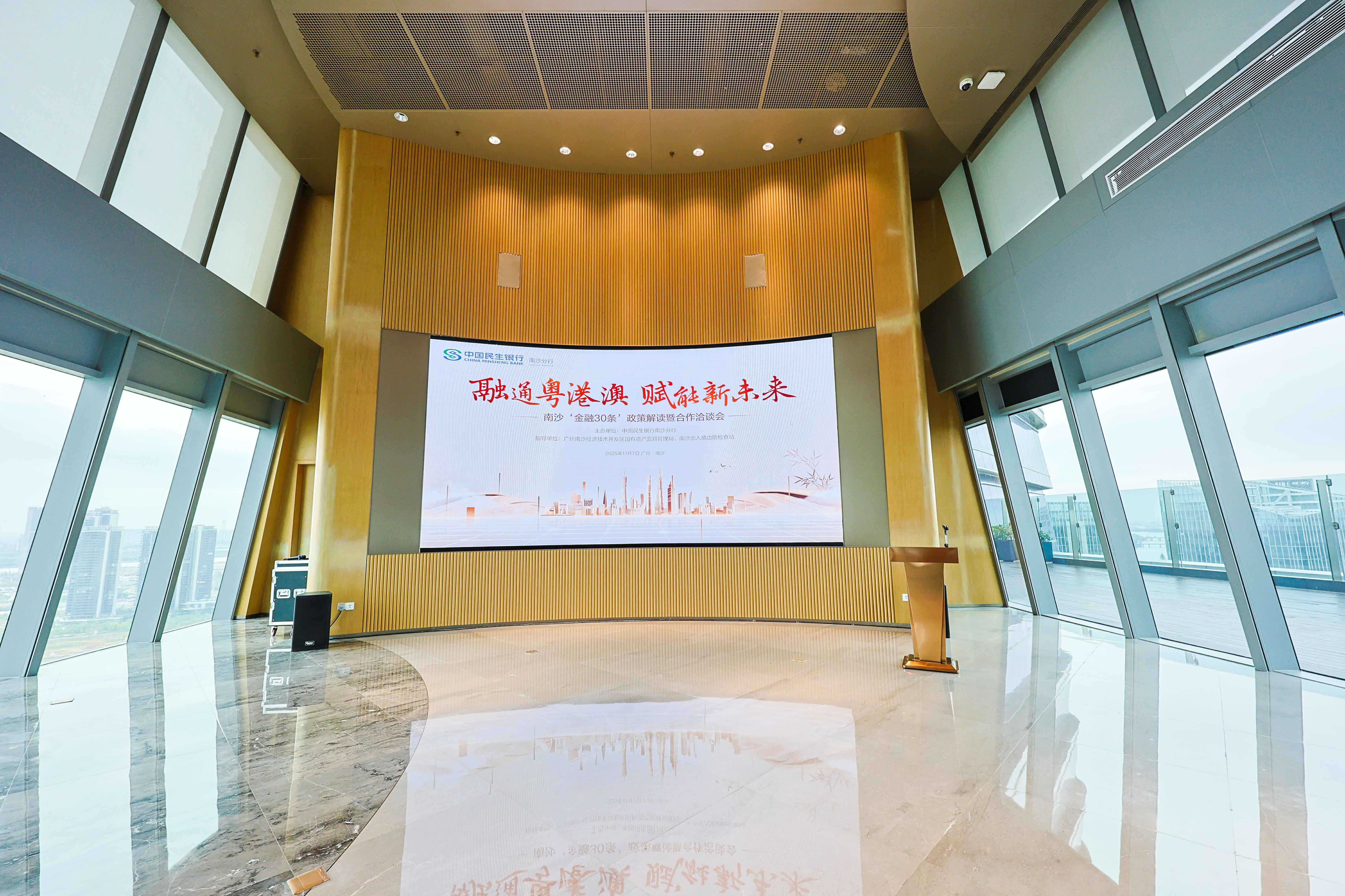 为充分发挥南沙“金融30条”政策红利,助力粤港澳大湾区金融互联互通与产业高质量发展,2025年11月7日上午,在广州南沙经济技术开发区国有资产监督管理局、南沙出入境边防检查站的指导下,由中国民生银行南沙分行主办的“融通粤港澳,赋能新未来”——南沙“金融30条”政策解读暨合作洽谈会在南沙IFC中心圆满举办。本次活动旨在深入解读南沙出入境的最新政策,精准对接企业需求,助力广大中小企业把握政策机遇,共享南沙发展红利,为大湾区高质量发展提供交流合作平台。