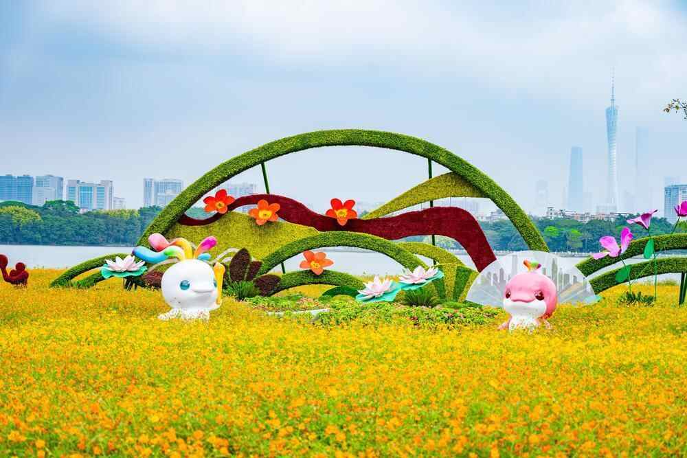 十五运会和残特奥会期间,广州海珠湿地将十五运会吉祥物融入花海湖景中,打造特色生态景观,“盛装”迎接精彩赛事,持续擦亮广州“城央湿地”和“城市生态会客厅”的生态名片。