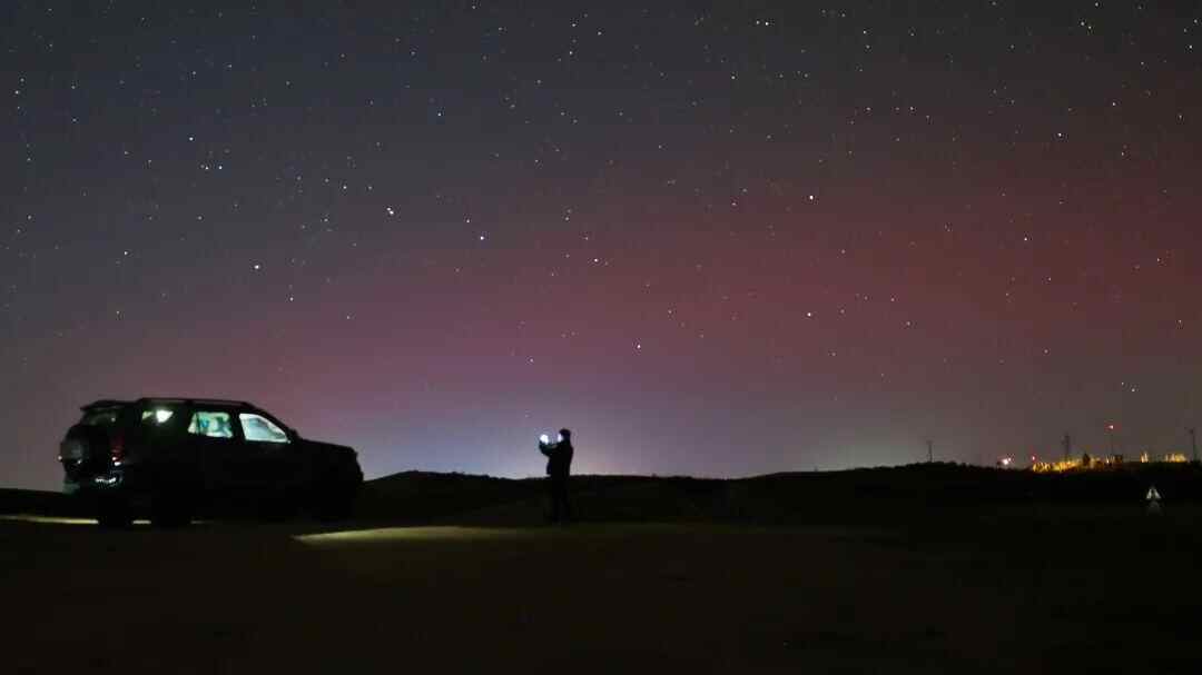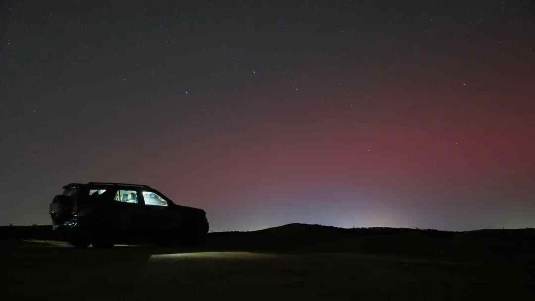 另外,极光也出现在北京北部,肉眼可见淡粉与一抹淡淡的绿色。