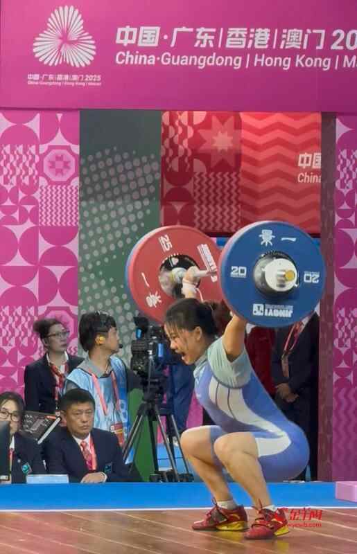 与此同时,方淋展现出更稳定的竞技状态,她第二次试举便成功举起111公斤,并在第三把将杠铃重量提升至113公斤,一举成功,在抓举结束后占据榜首。杨柳月则两次冲击112公斤未果,未能缩小差距。