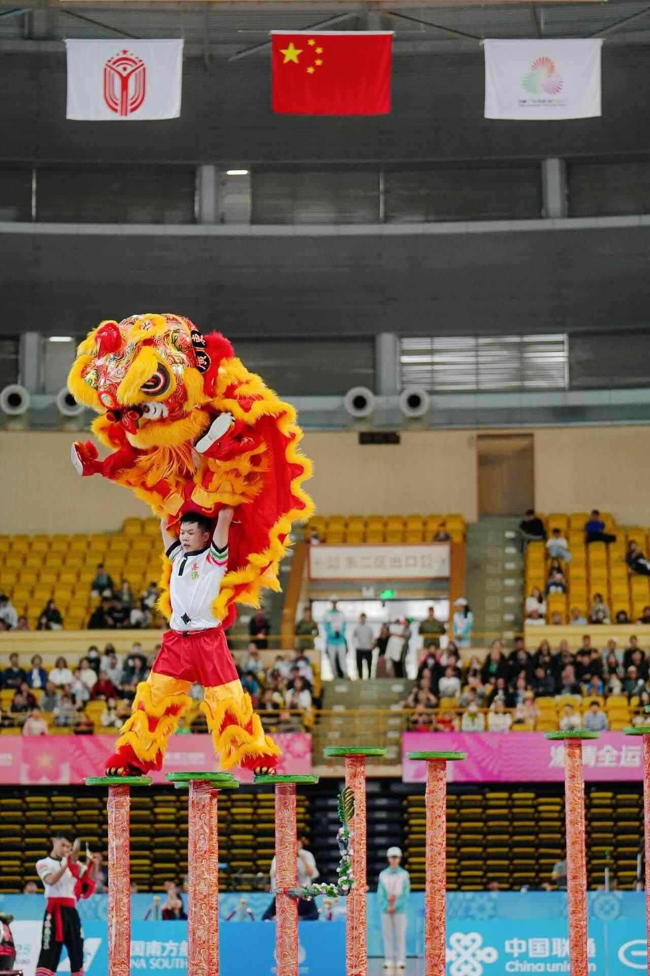 作为十五运会首次纳入群众展演的项目,舞龙舞狮项目共设南狮自选、南狮障碍、南狮传统、舞龙障碍等8个单元的决赛。在接下来的两天里,来自全国各省、自治区、直辖市及特别行政区的代表队将继续同台竞技,为观众献上一场融合传统非遗与体育激情的龙狮盛宴。