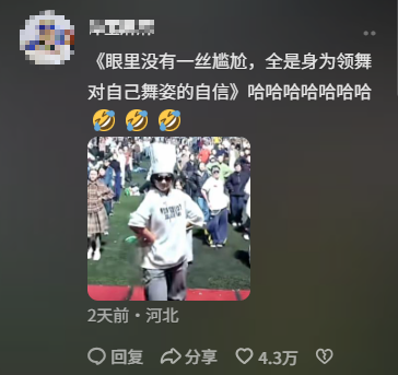 对此,有网友表示,领舞眼里没有一丝尴尬,全是对自己舞姿的自信。