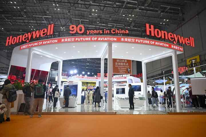 2025年11月7日,观众在进博会技术装备展区霍尼韦尔展台参观。霍尼韦尔是进博会八届“全勤生”。新华社记者 陈浩明 摄