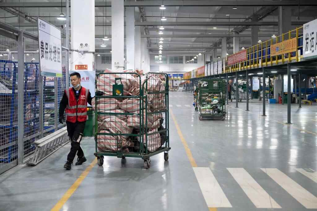 11月10日晚,在中国邮政集团有限公司黑龙江省哈尔滨邮区中心,工作人员在搬运快递。