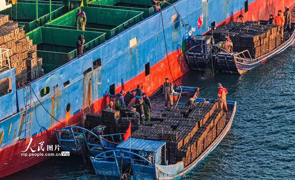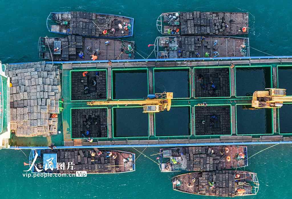 2025年11月10日,在山东省荣成市俚岛湾、爱伦湾等海域,养殖户们抓紧时间将南下“越冬”的鲍鱼装船,发往福建海域继续养殖。