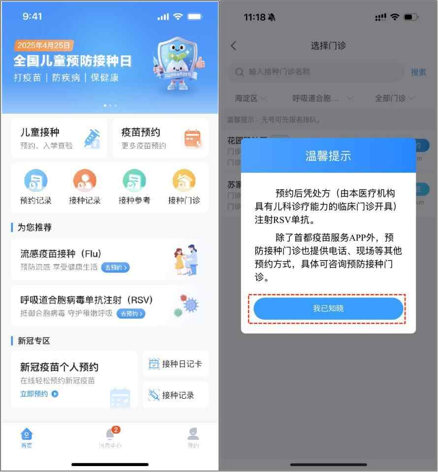 2、首都疫苗服务App→呼吸道合胞病毒单抗注射(RSV)