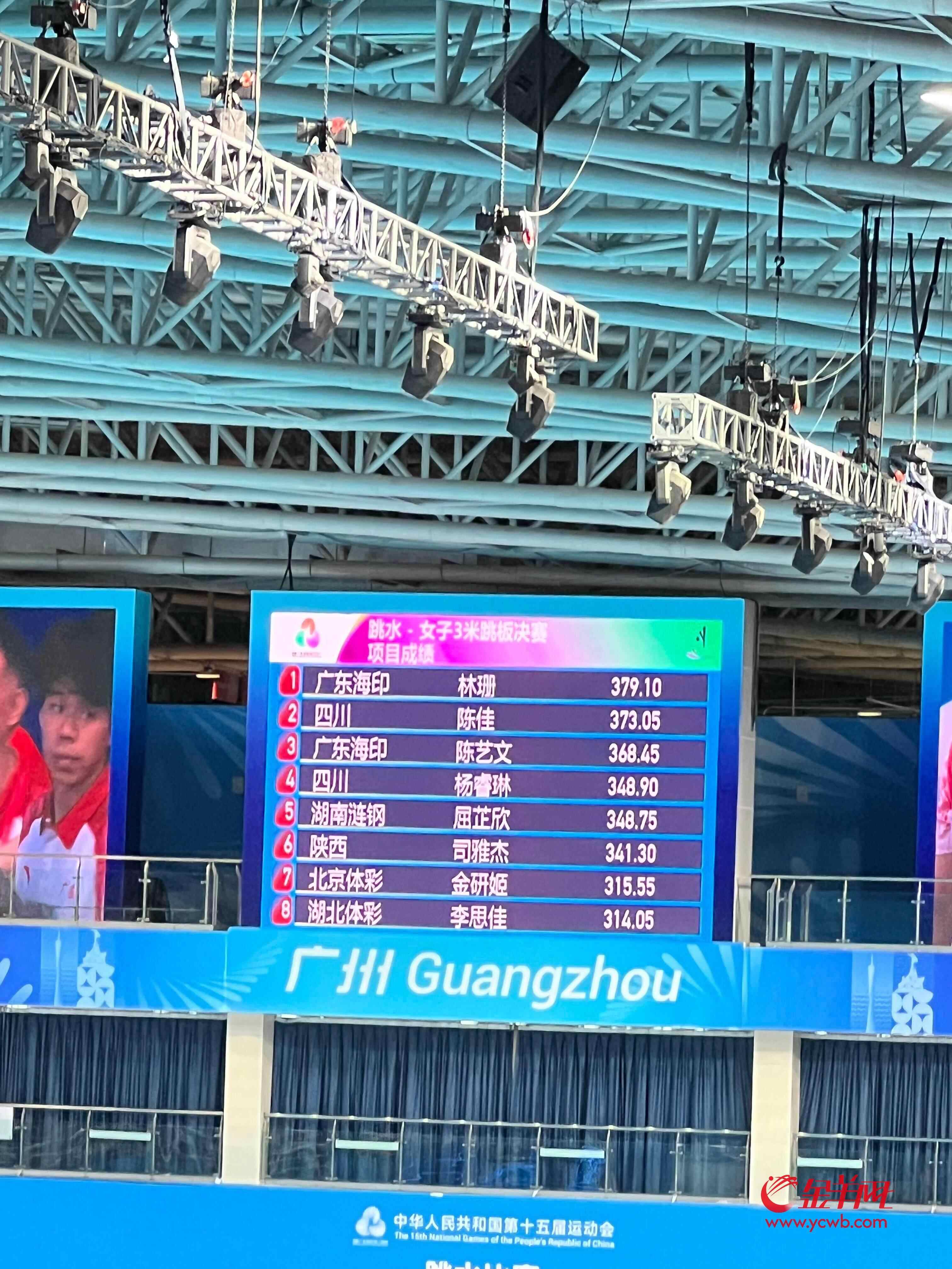 11月11日,十五运会跳水项目在广东奥体中心迎来最后一个比赛日,在当天进行的女子3米板决赛中,广东选手林珊发挥出色夺得金牌。这也是广东队在本届全运会跳水项目上获得的第六块金牌。四川选手陈佳获得银牌,广东选手陈艺文获得铜牌。
