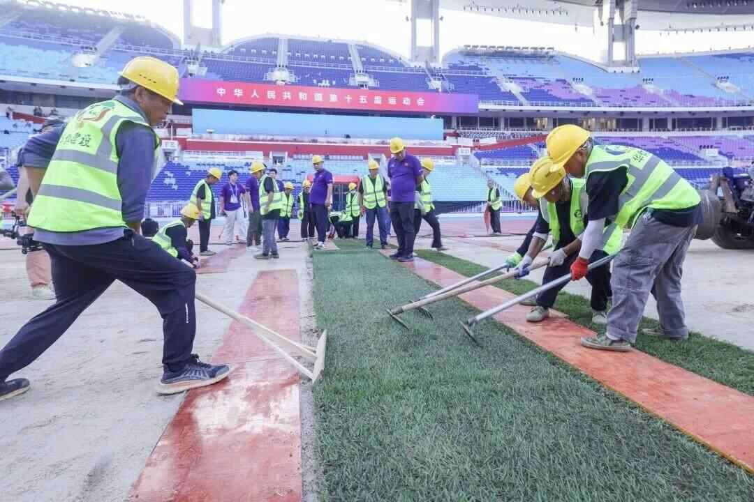 11月11日凌晨5时,随着运动场的草皮铺设完成,广东奥林匹克体育中心转场工作基本完成。十五运会开幕式结束后,广东奥体中心便迅速开启转场,这座承载数万观众观看盛大表演的场馆,拆除舞台搭建转换为赛场设置,迅速变身专业田径赛场,准备迎接11月15日在此举行的田径赛事。