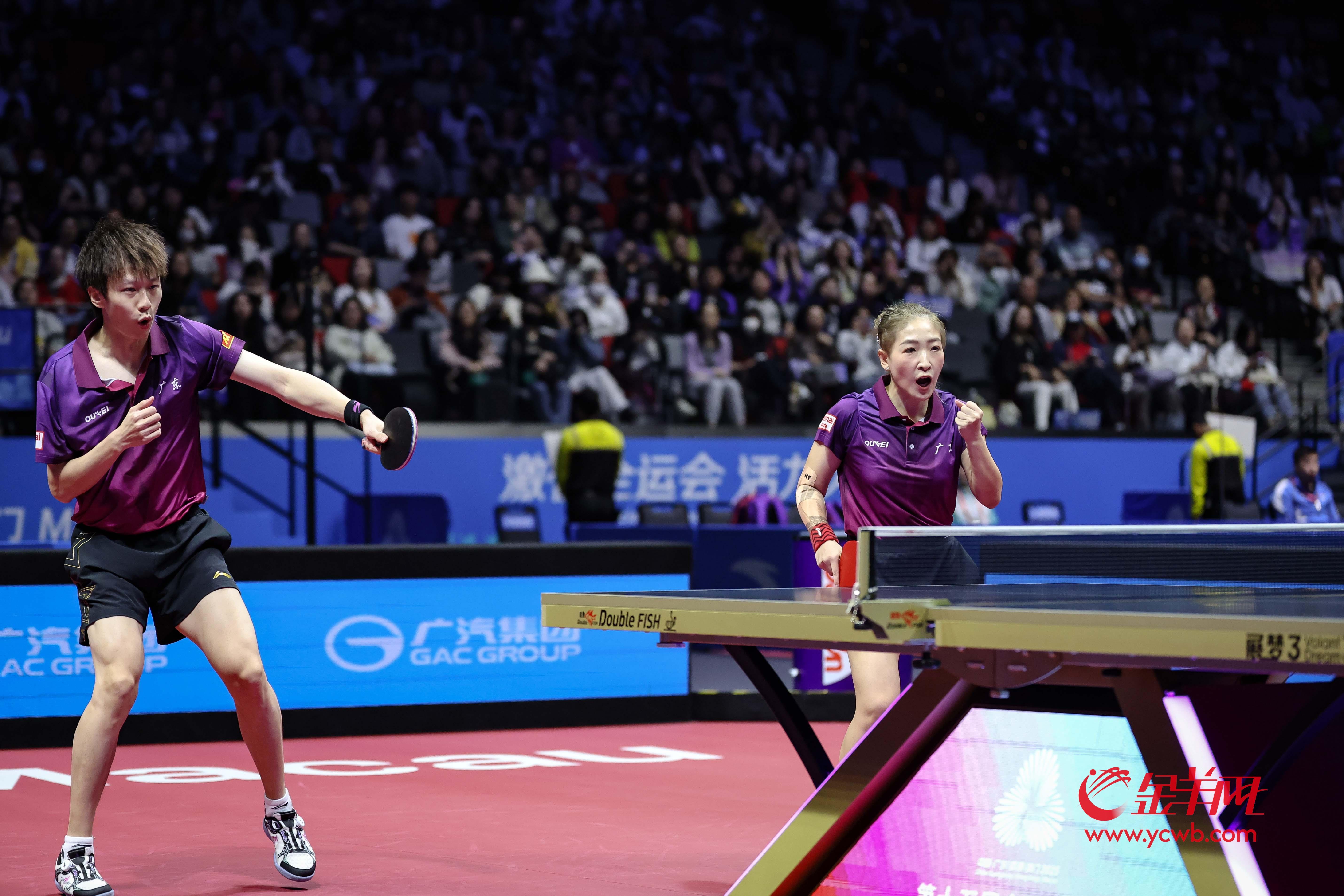 11月11日,十五运会乒乓球赛事继续在澳门进行。在当天晚间进行的成年组混双1/4决赛中,广东组合“诗与远方”(刘诗雯/林高远)以大比分4比1战胜上海队组合赵钊彦/孙铭阳,成功夺取一个半决赛席位。