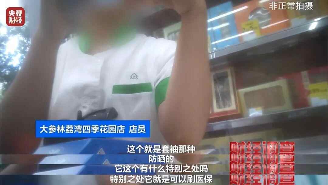 记者在大参林连锁药店荔湾四季花园店见到货架上的医用隔离垫,询问店员得知这其实是一款防晒冰袖。记者询问这款防晒冰袖有何特别之处?为何产品名称叫医用隔离垫?店员坦言,特别之处就是能刷医保结算,为了能刷医保,只能打上医用名称。