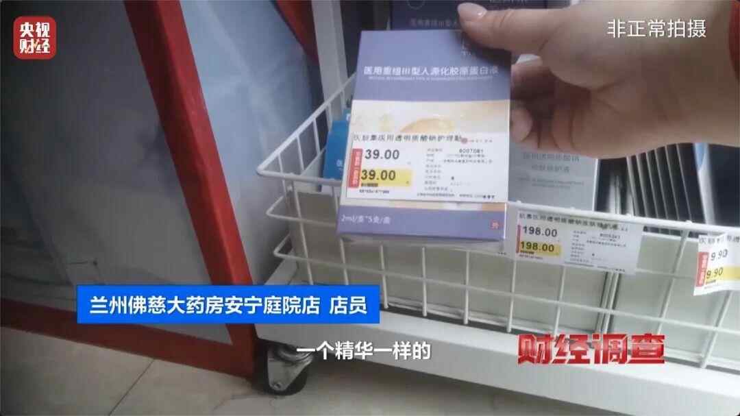 在与店员的交谈中记者了解到,产品包装上“预期用途”和“产品名称”的写法必须和医疗器械的备案信息一致,这是为了能让这些护肤品顺利通过医保系统的核验,进而纳入当地医保结算目录当中,药店销售这样的产品,盈利更多,因此也在卖力推广。