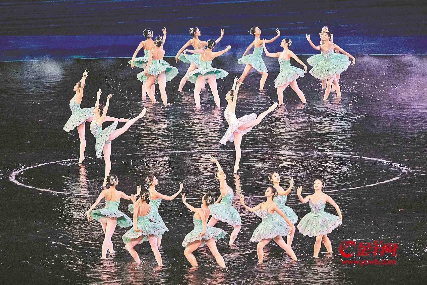 波光为纸,身躯作笔,他们在粼粼水面上书写大湾区的千年故事;威亚为翼,刀光作画,他们在苍穹之下勾勒武侠梦的浪漫传奇;足尖立梦,汗水为墨,她们跨越城域携手共绘艺术同心圆……