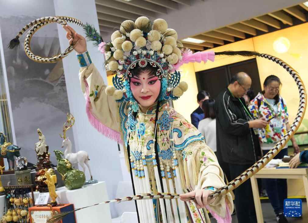 11月7日,首发首秀艺术作品“川剧仙伶”在第八届进博会四川展区吸引观众参观。