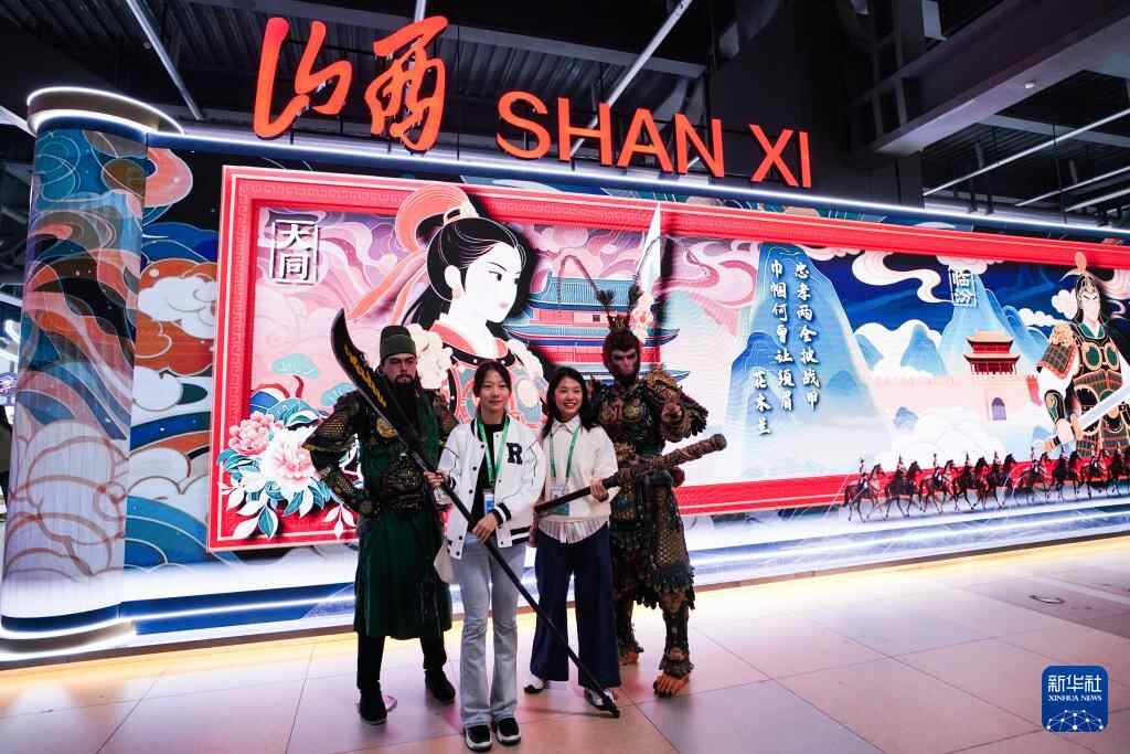11月8日,参观者在第八届进博会山西展厅观看表演。