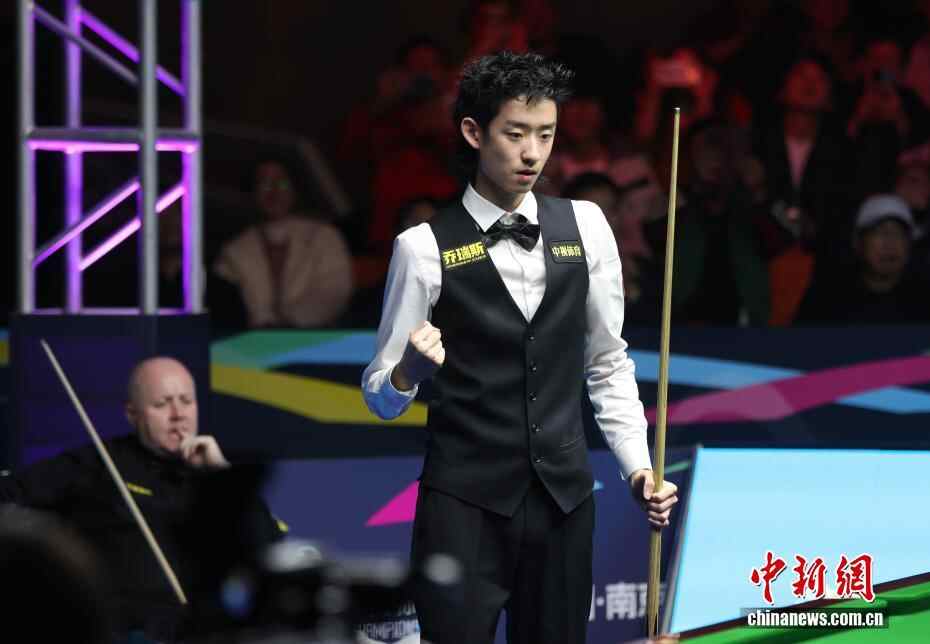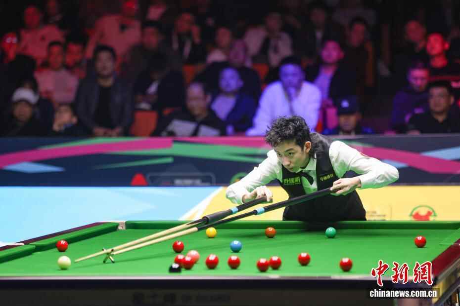 11月9日晚,在南京举行的2025世界斯诺克巡回赛国际锦标赛决赛中,中国小将吴宜泽击败老将约翰·希金斯,夺得冠军。图为吴宜泽在比赛中。