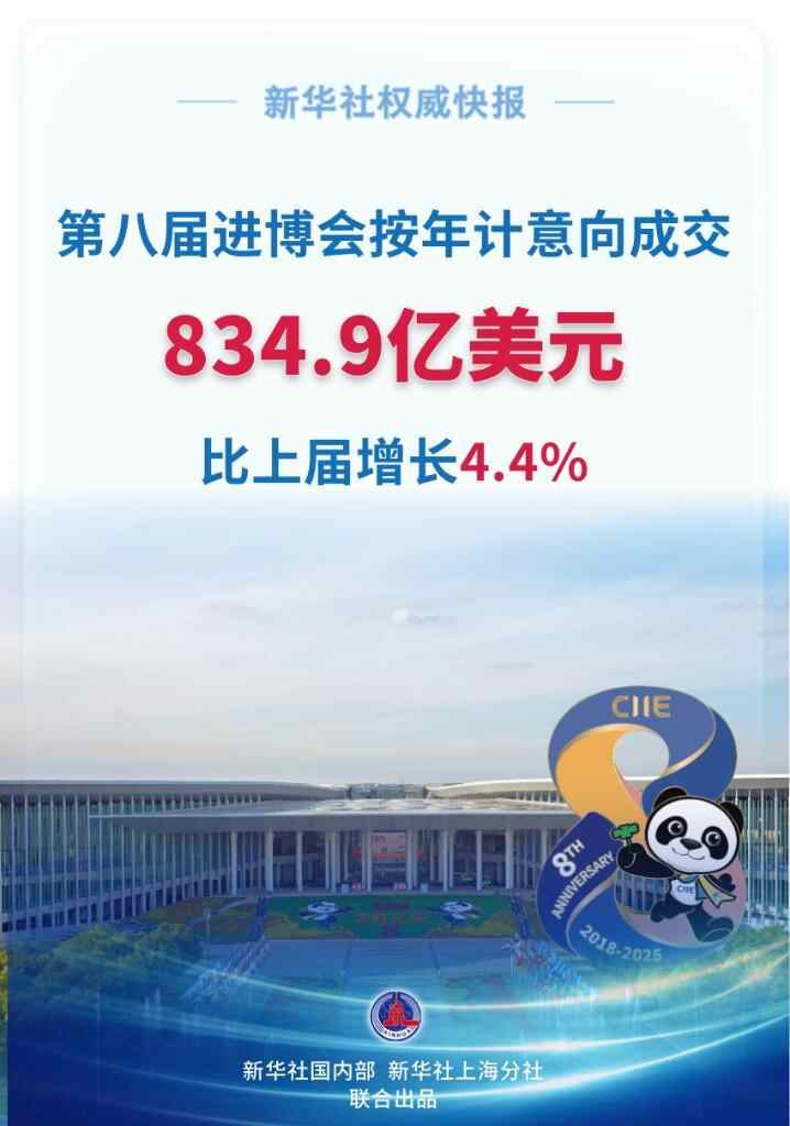 新华社权威快报丨第八届进博会按年计意向成交额突破834亿美元