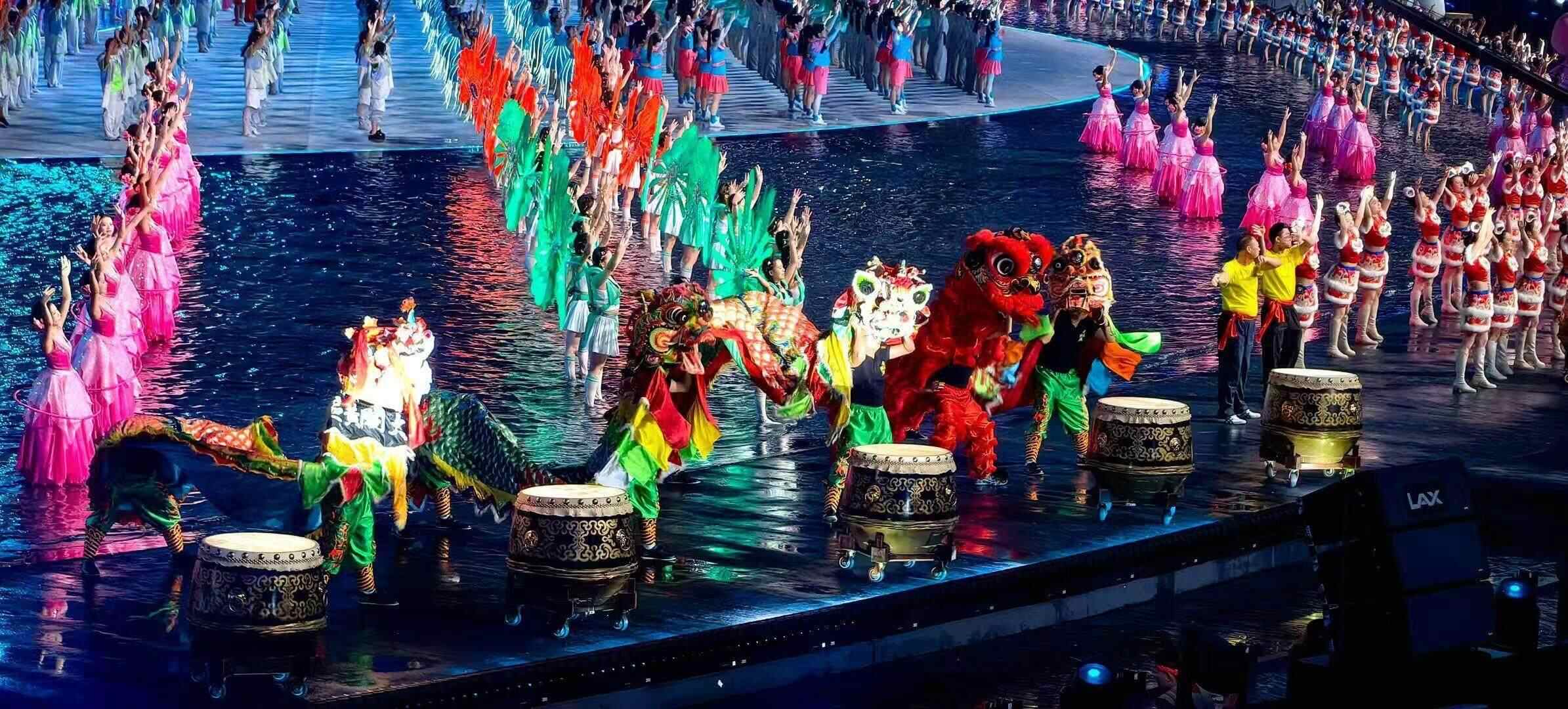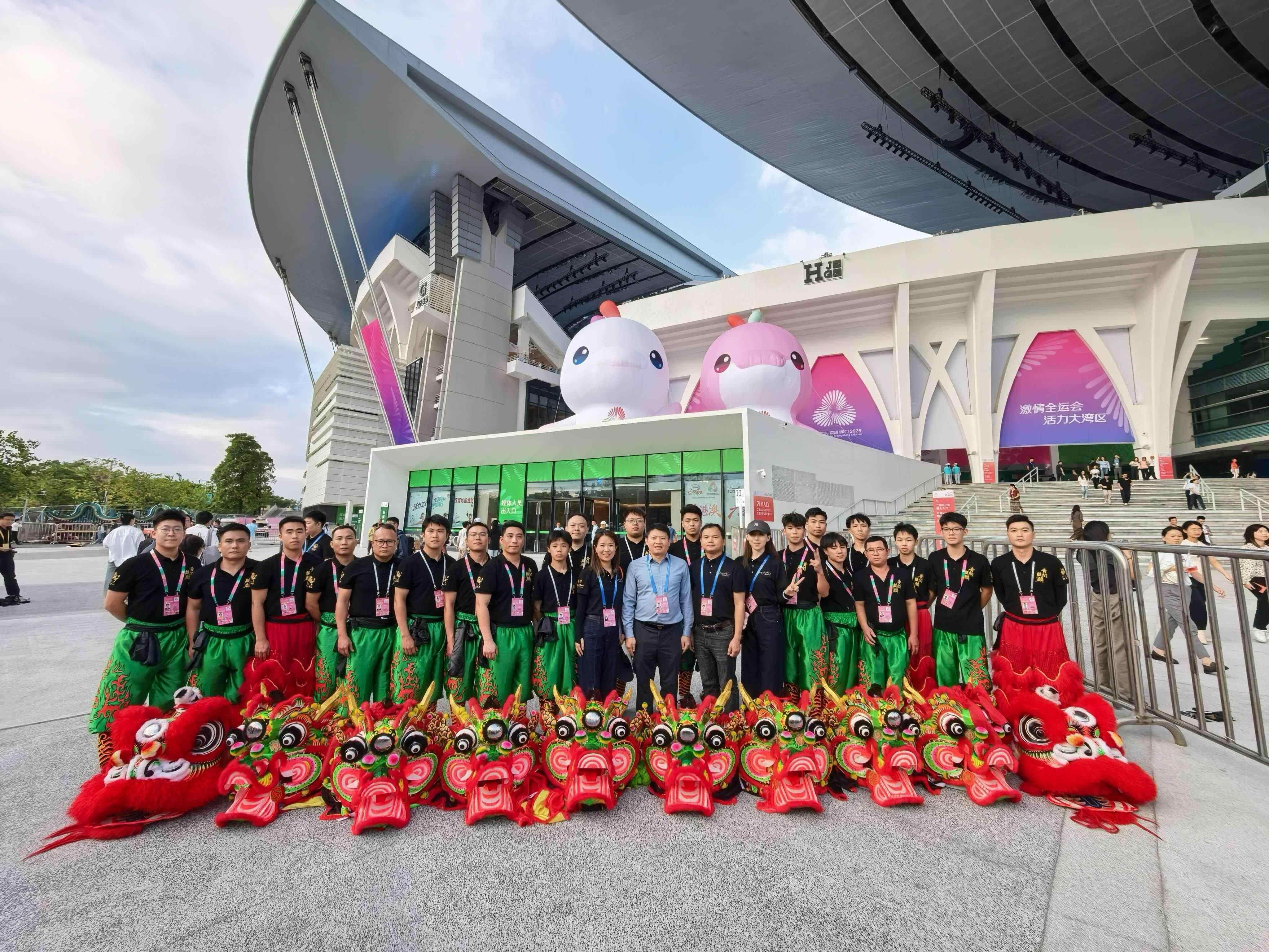 南沙区黄阁镇的8头麒麟与2头醒狮也亮相开幕式,配合主题歌《天海一心》,以“科技+体育+艺术”的形式进行表演,展现南沙的文化积淀与青少年的蓬勃朝气。