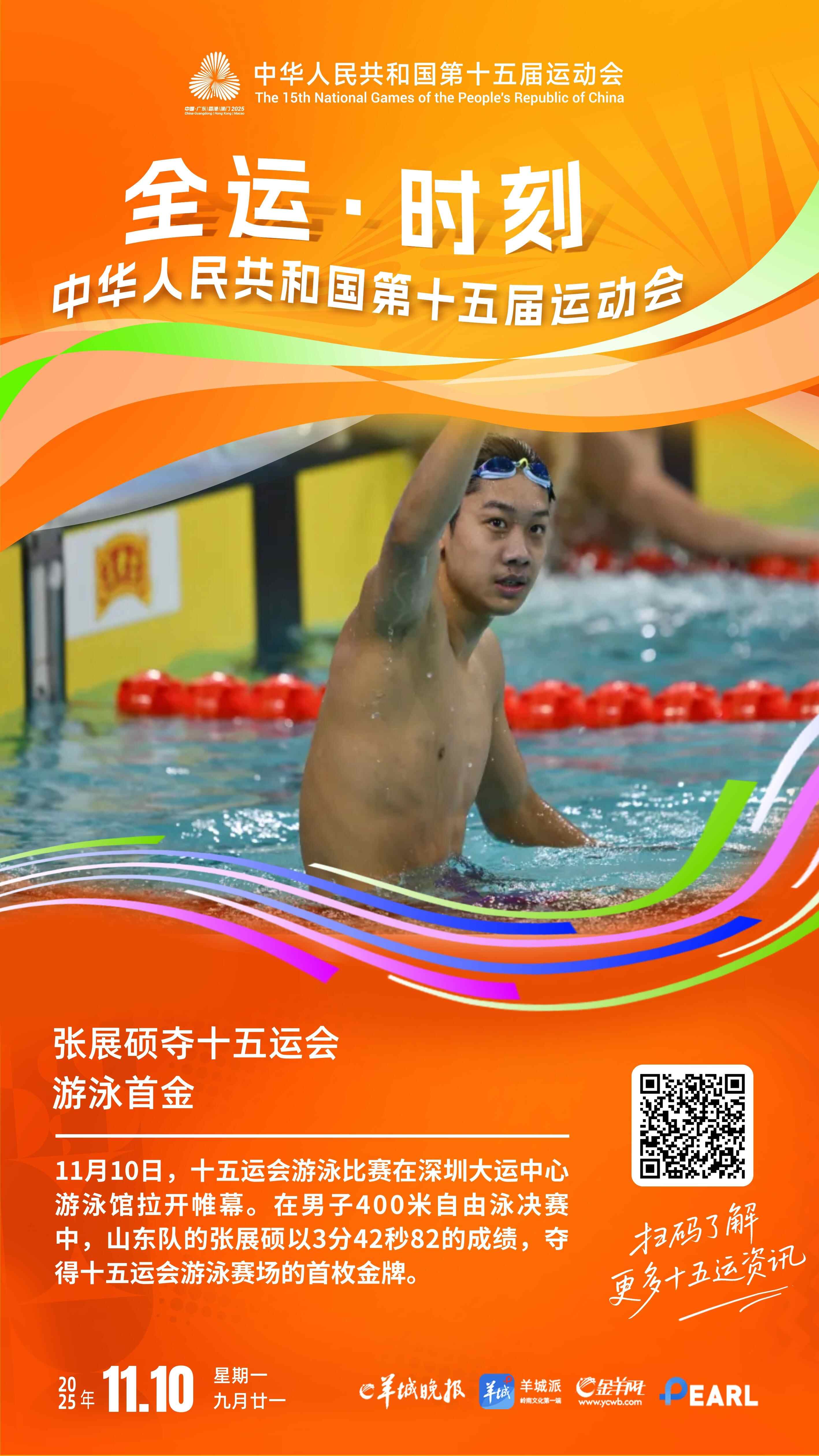 海报 | 张展硕夺得十五运会男子400米自由泳金牌