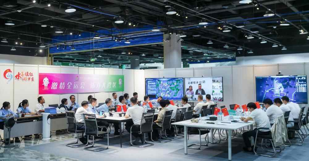 当开幕式场馆大屏幕上倒计时“3、2、1”的数字闪烁,广州水投集团供排水保障指挥部的智慧大屏上一组组数据也在跳动着,工作人员紧盯大屏上的数据变化。
