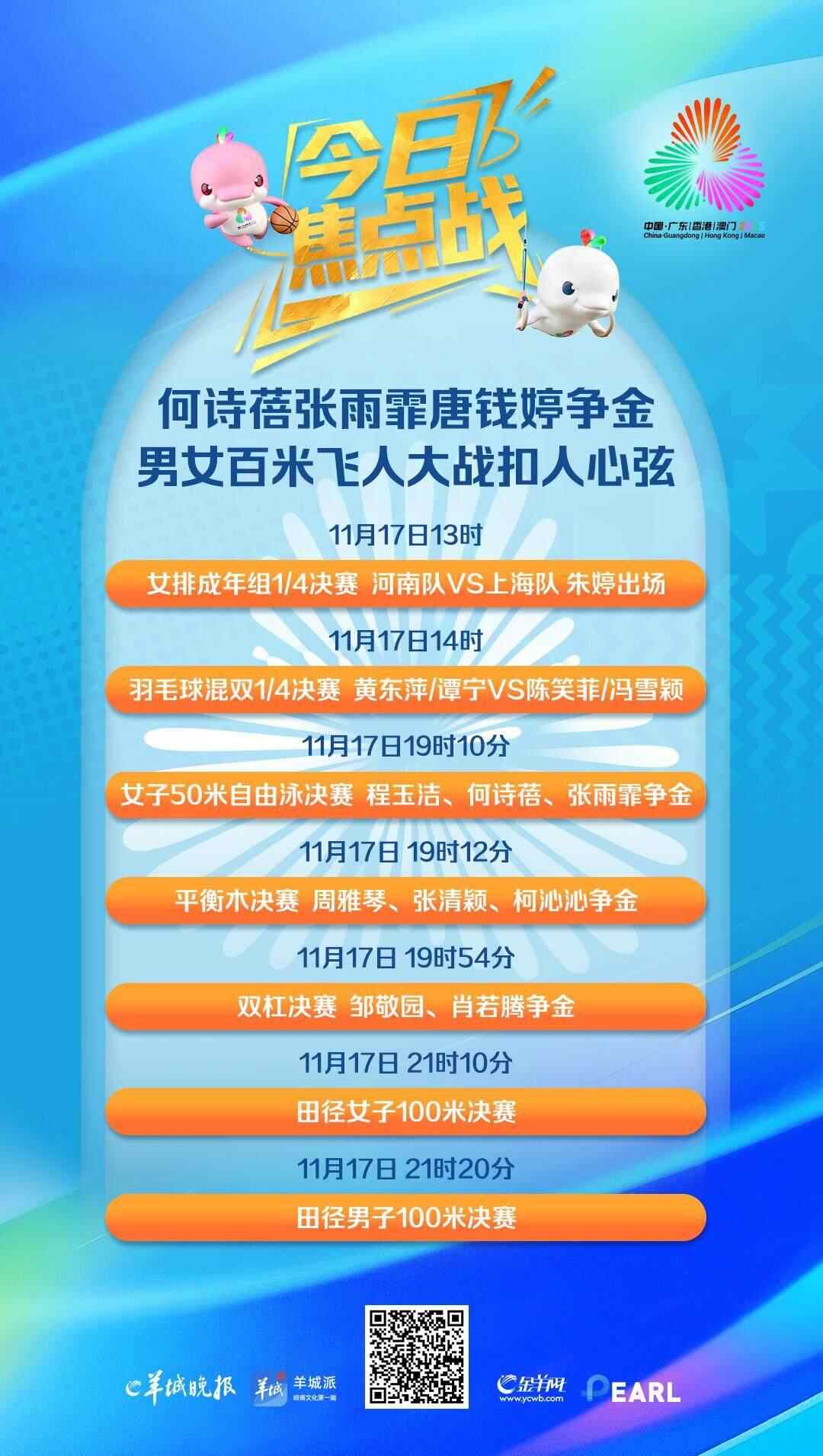 11月17日,十五运会正赛迎来第八个比赛日,各项赛事将会精彩纷呈,游泳、田径、体操等项目将产生33枚金牌。