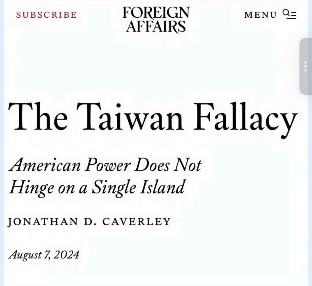 同样是这位卡弗利教授,去年8月他曾经在美国《外交事务》杂志撰文,题为“台湾谬论:美国的力量并不取决于单一岛屿”(The Taiwan Fallacy: American Power Does Not Hinge on a Single Island),他认为,对于美国来说,全力防卫台湾岛是一个高风险、低回报的选项,如果美国做出错误的军事反应,中国军队将凭借地理优势给予美军重大打击。