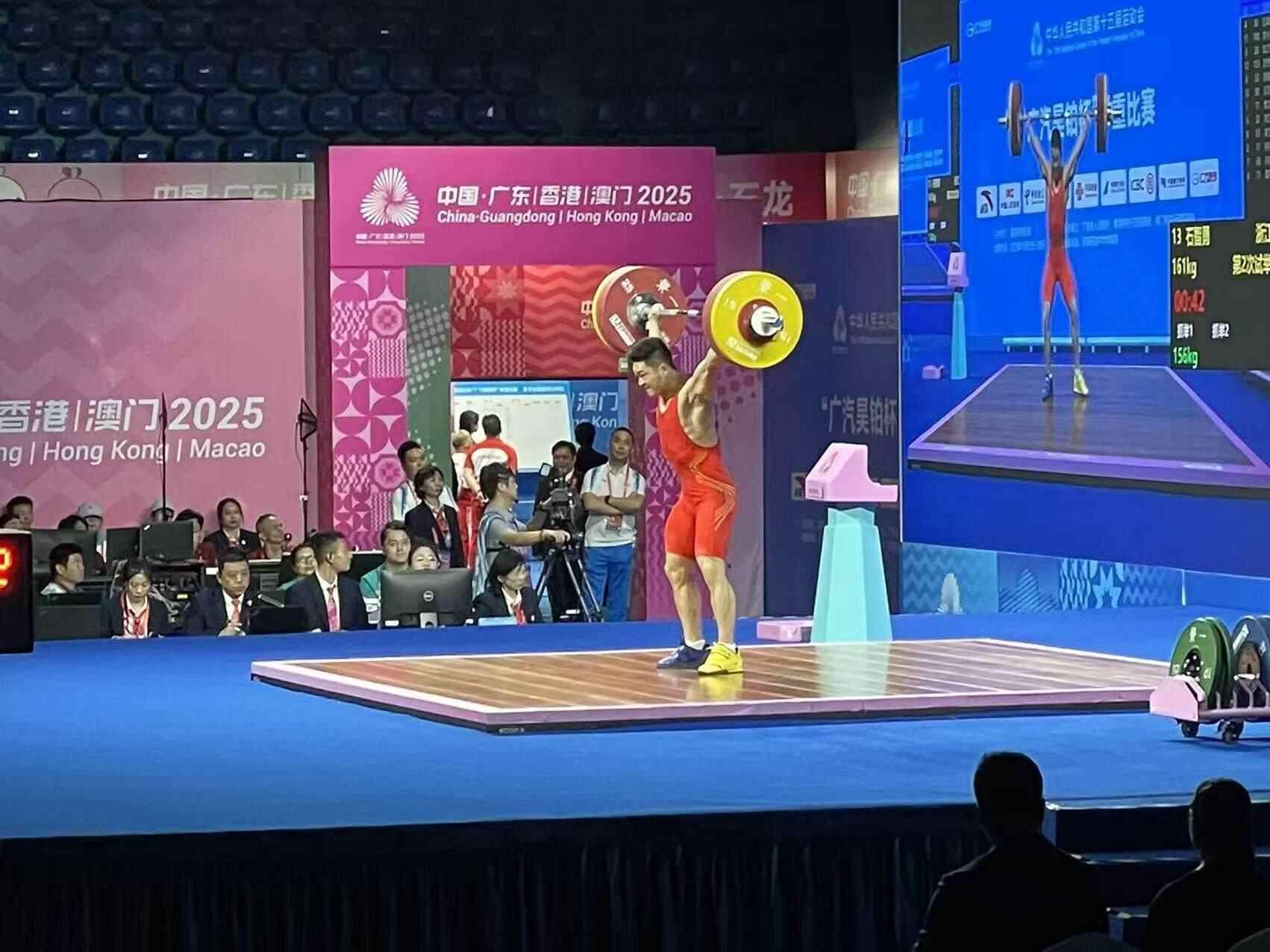 11月17日,第十五届全运会举重男子73公斤级决赛在东莞市石龙中学体育馆进行。世界纪录保持者、奥运冠军石智勇夺得冠军,用一枚金牌告别自己22年的举重生涯。成都体育学院陆乃港摘银,湖南队彭政林获得铜牌。