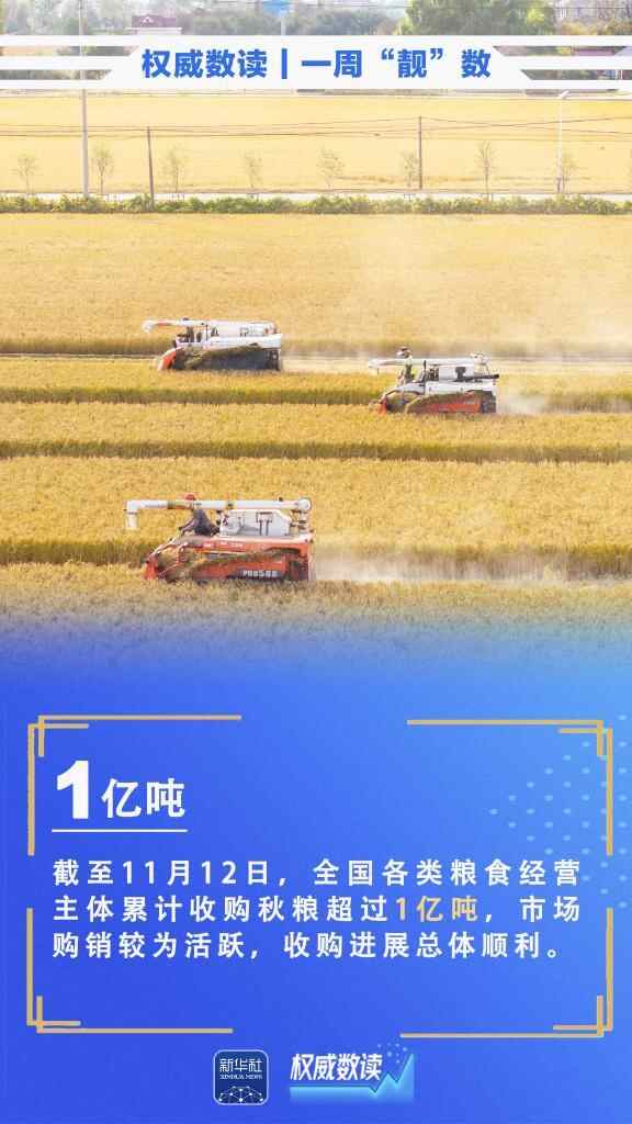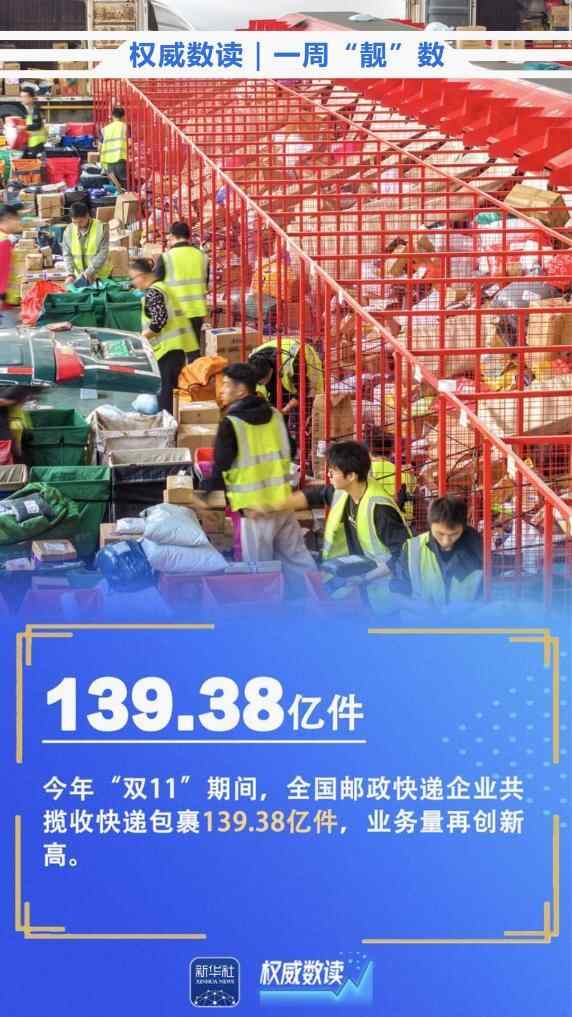 10月份,全国规上工业增加值同比增长4.9%;今年“双11”期间,全国邮政快递企业共揽收快递包裹139.38亿件,业务量再创新高;截至11月12日,全国各类粮食经营主体累计收购秋粮超过1亿吨……本周这些数据,最值得关注!