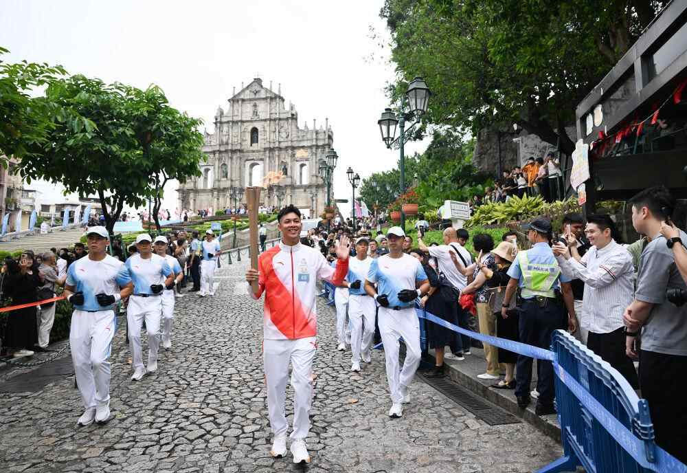 11月2日,全运会火炬在澳门大三巴牌坊前传递。新华社发(张金加 摄)