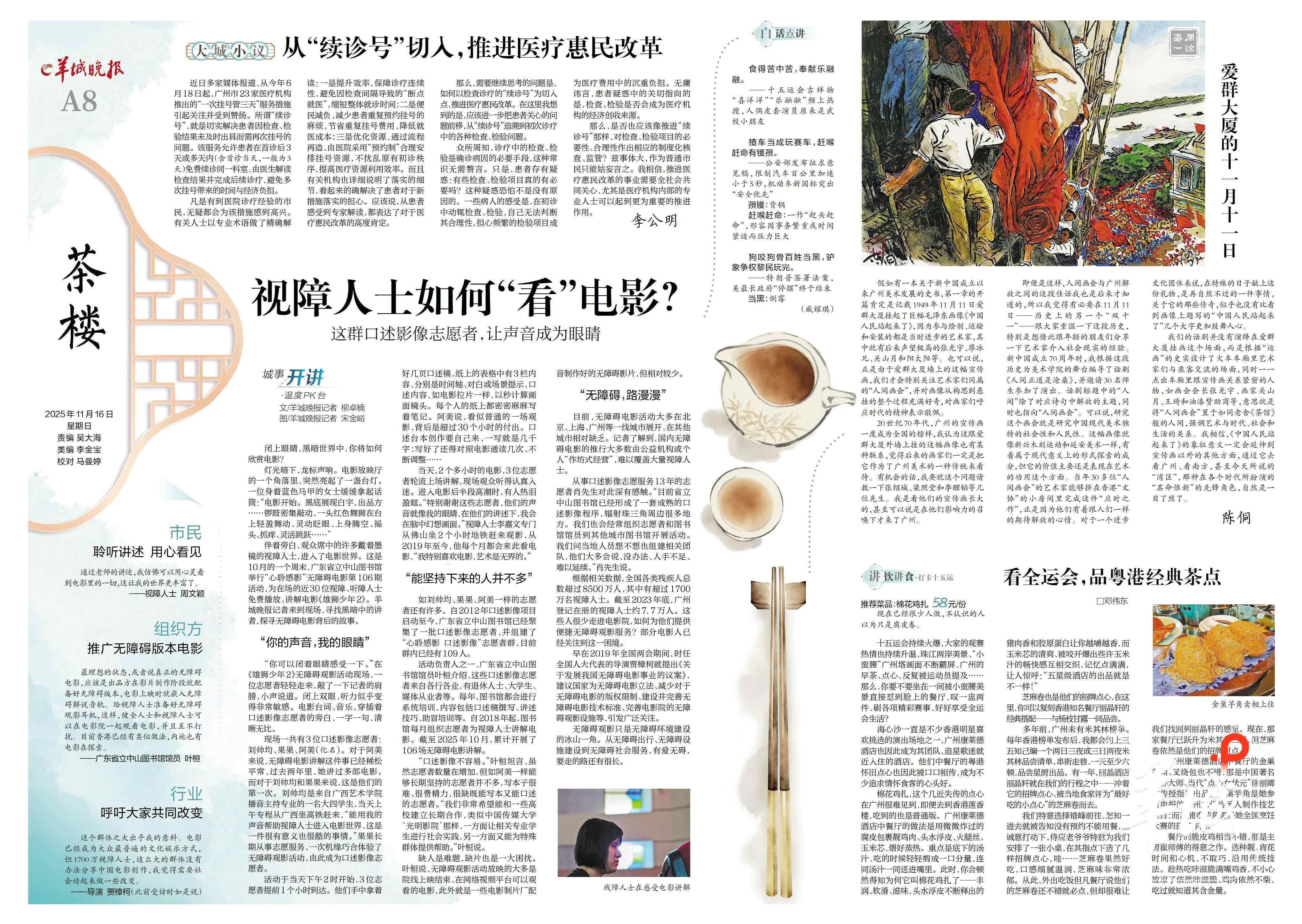 “特别谢谢这些志愿者,他们的声音就像我的眼睛,在他们的讲述下我会在脑中幻想画面。”视障人士李嘉文专门从佛山坐2个小时地铁赶来观影,从2019年至今,他每个月都会来此看电影。“我特别喜欢电影,艺术是无界的。”李嘉文说。