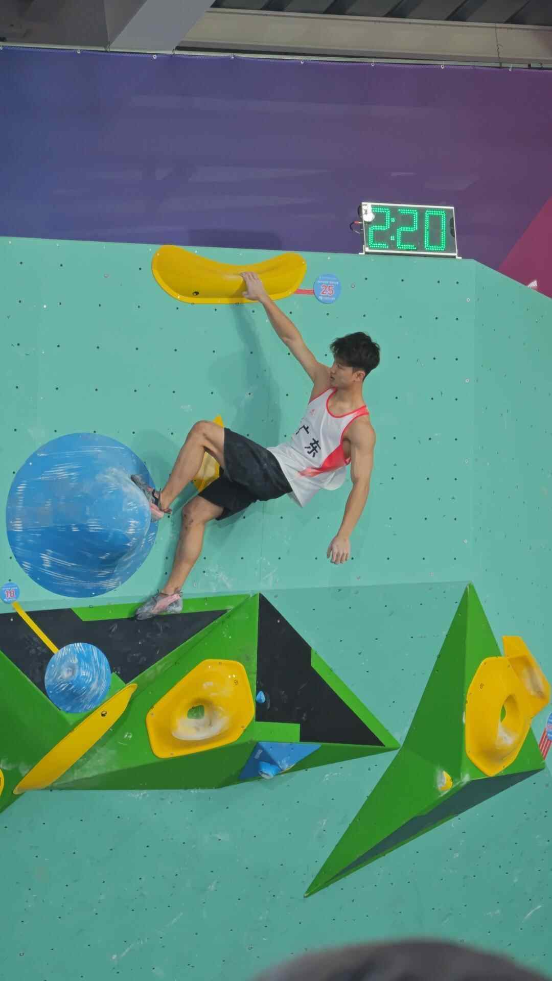11月15日下午,第十五届全国运动会攀岩项目的男子攀石决赛在广州大学城体育中心极限运动中心精彩落幕。