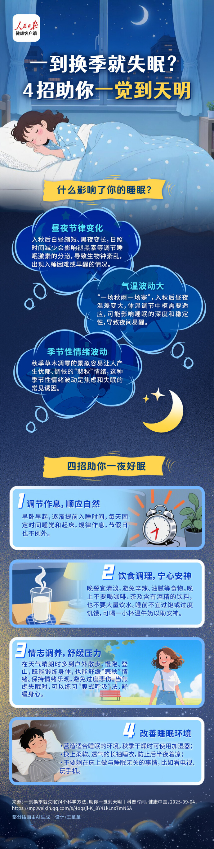 换季时,气温、湿度、日照时间都在悄然改变,我们的身体如果没跟上节奏,就容易出现失眠的情况。派派君教您4招,让您一觉睡到天明。