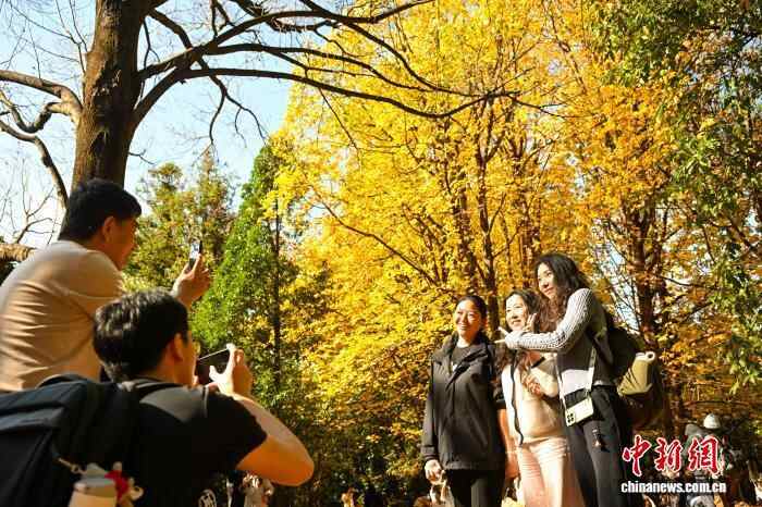 11月14日,云南昆明,枫香大道游人如织。中新社记者 李嘉娴 摄