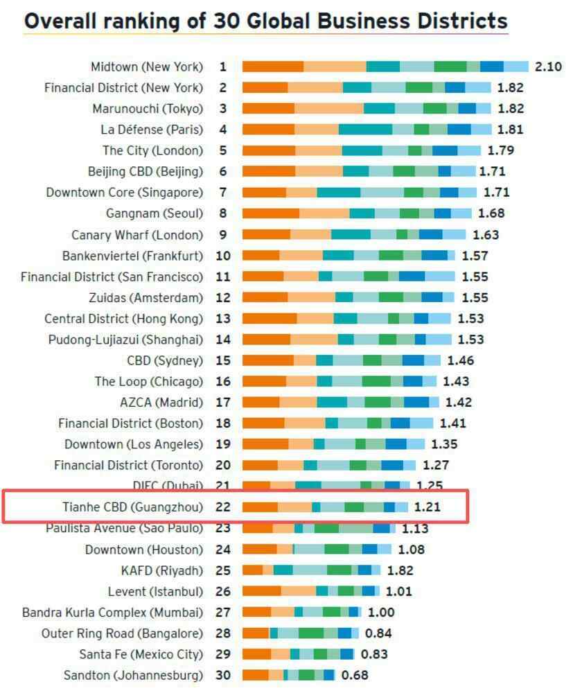 11月14日,《2025全球商务区吸引力报告》发布,广州市天河中央商务区首次参评,即位列全球CBD第22位、中国4强,彰显其全球竞争力与认可度。