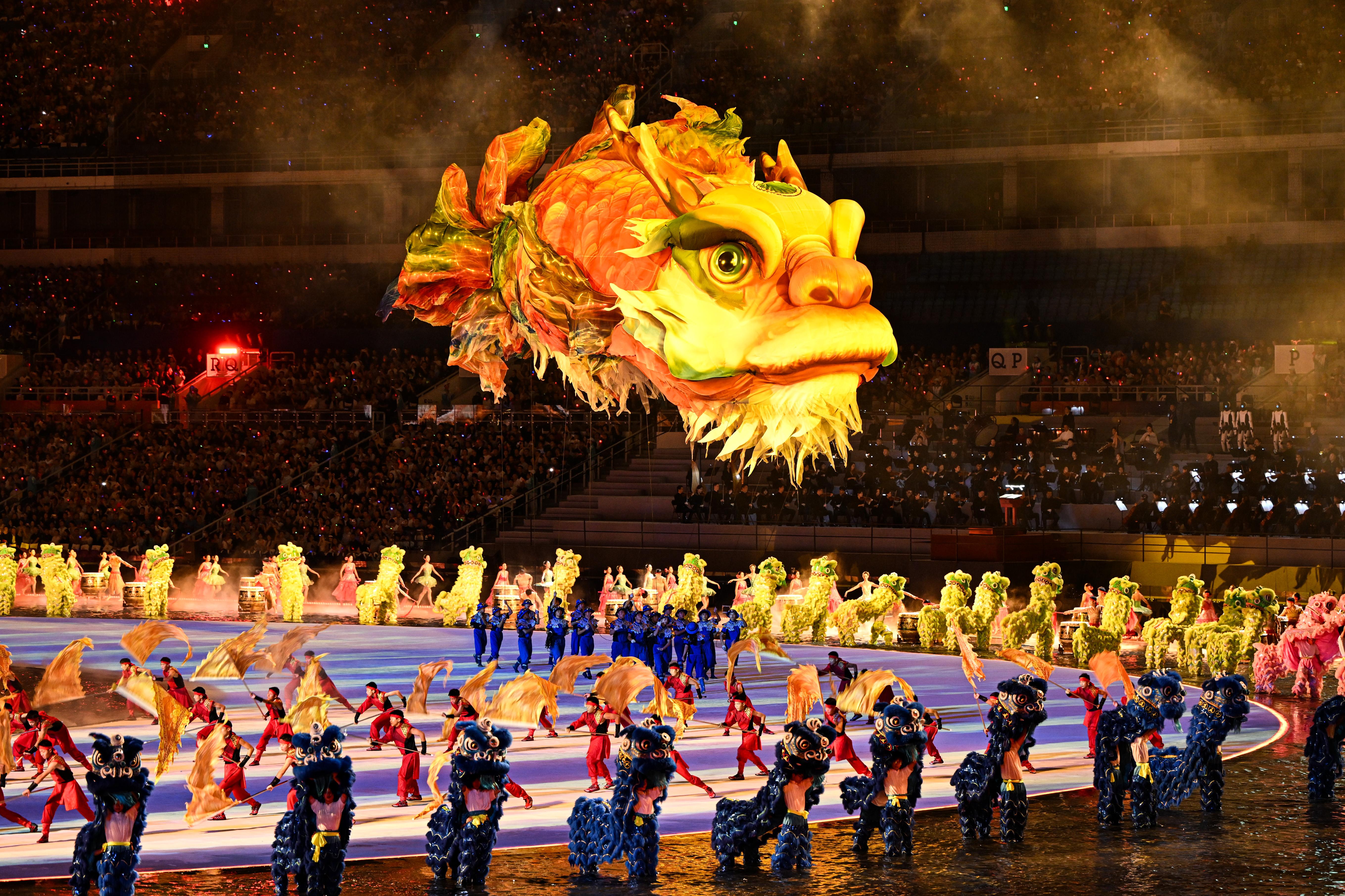 羊城晚报:开幕式呈现的“鳌鱼”体量非常大,栩栩如生地游动在场馆中央,这一创意是怎么来的?如何实现?