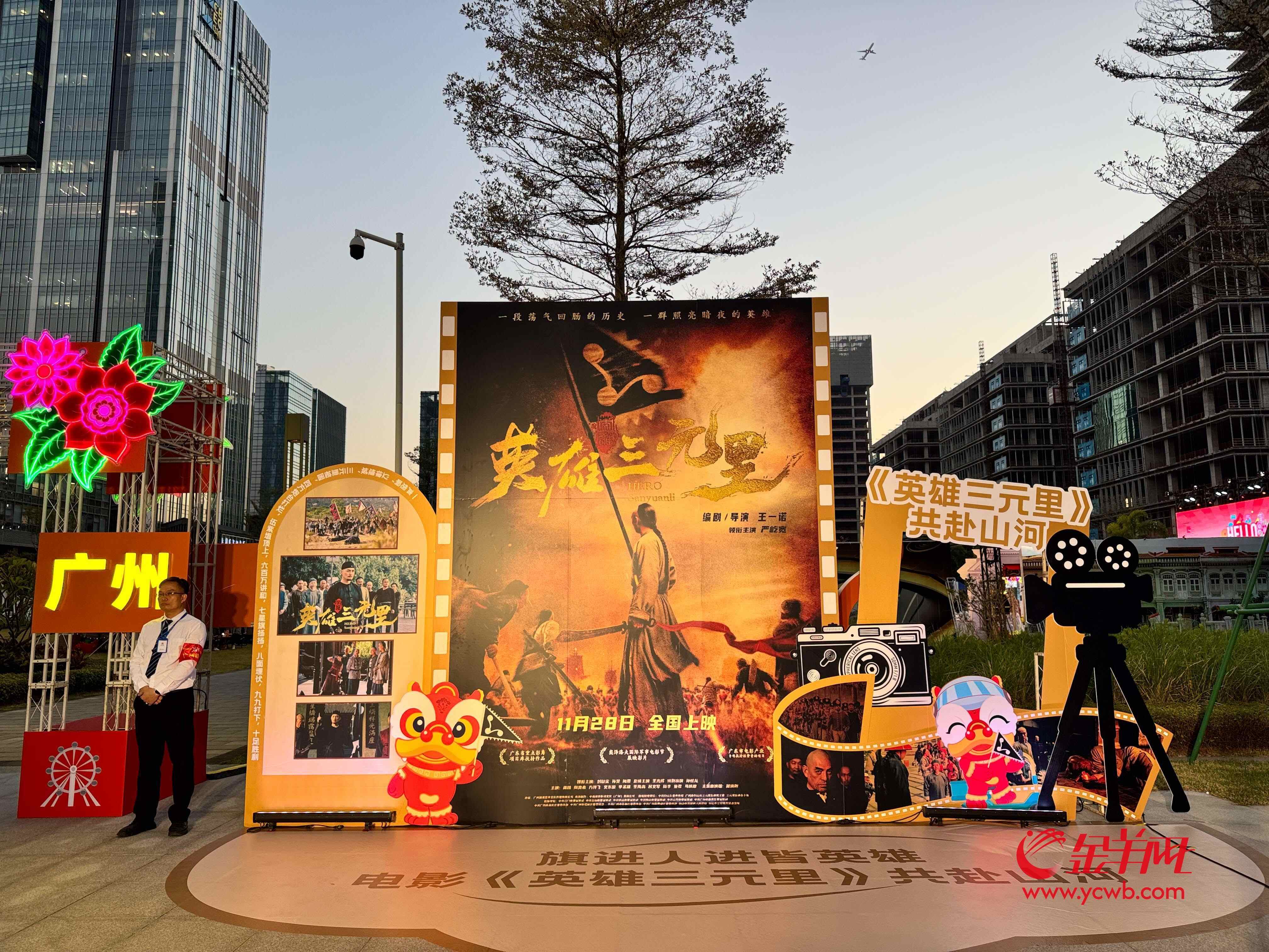 据悉,广东本土爱国主义大片《英雄三元里》官宣定档11月28日全国上映,影片生动再现184年前三元里103乡民众在三元古庙集结抗英的历史壮举——这是中国近代史上首次大规模民众自发抗英斗争。如今,白云新城商圈内随处可见电影宣传海报与LED大屏预告,浓厚的英雄氛围与现代商业空间交相辉映,赋予商圈独特的精神气质。