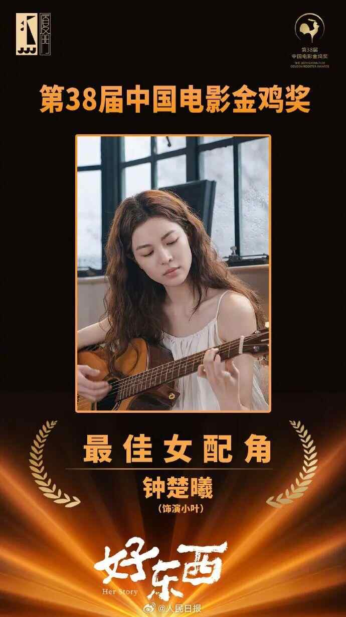 刚刚揭晓!钟楚曦获金鸡奖最佳女配角奖,袁富华获最佳男配角奖