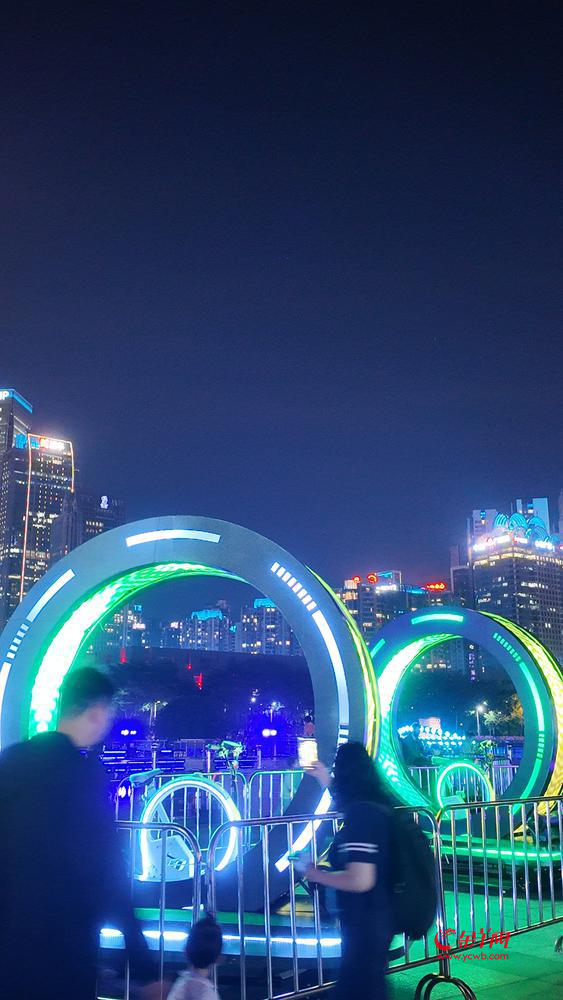 探营期间,不少市民被测试中的装置吸引,参与互动。据了解,本次广州国际灯光节在花城广场区域设置了多个可供互动的艺术装置。例如位于花城广场北广场的互动作品《月光下的浪漫》,在中轴线上放置多个圆月型幕布,以广州塔为背景,通过光影的互动,让观众成为作品的一部分,城市幸福的剪影,彰显湾区城市繁华发展下,一个个美满的瞬间。