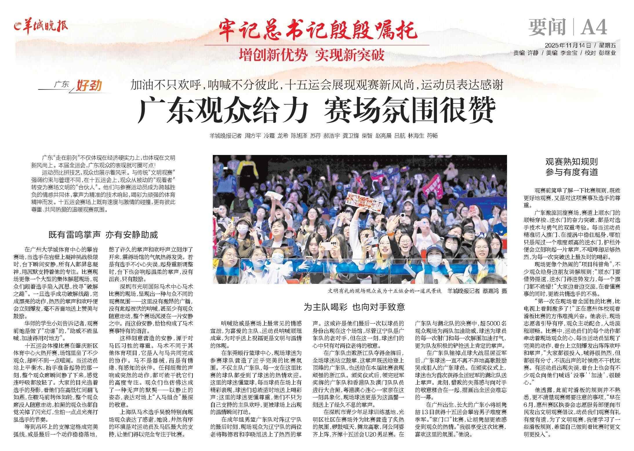 广东“走在前列”不仅体现在经济硬实力上,也体现在文明新风尚上。本届全运会,广东观众的表现就可圈可点!