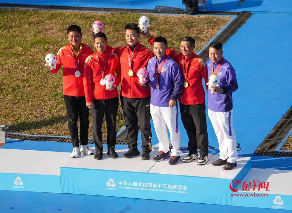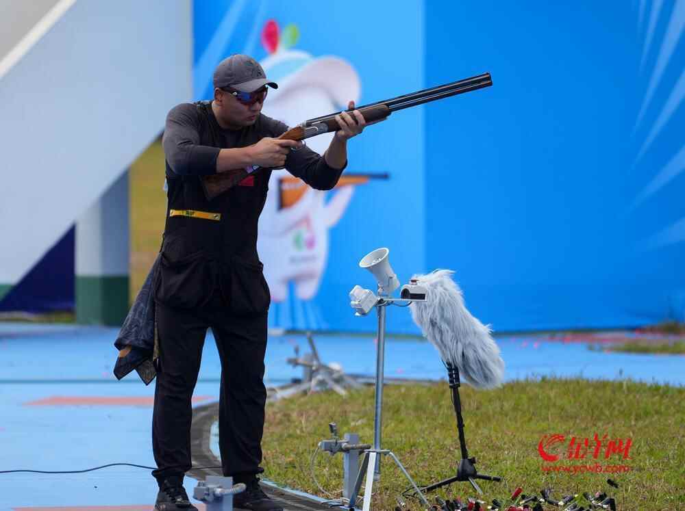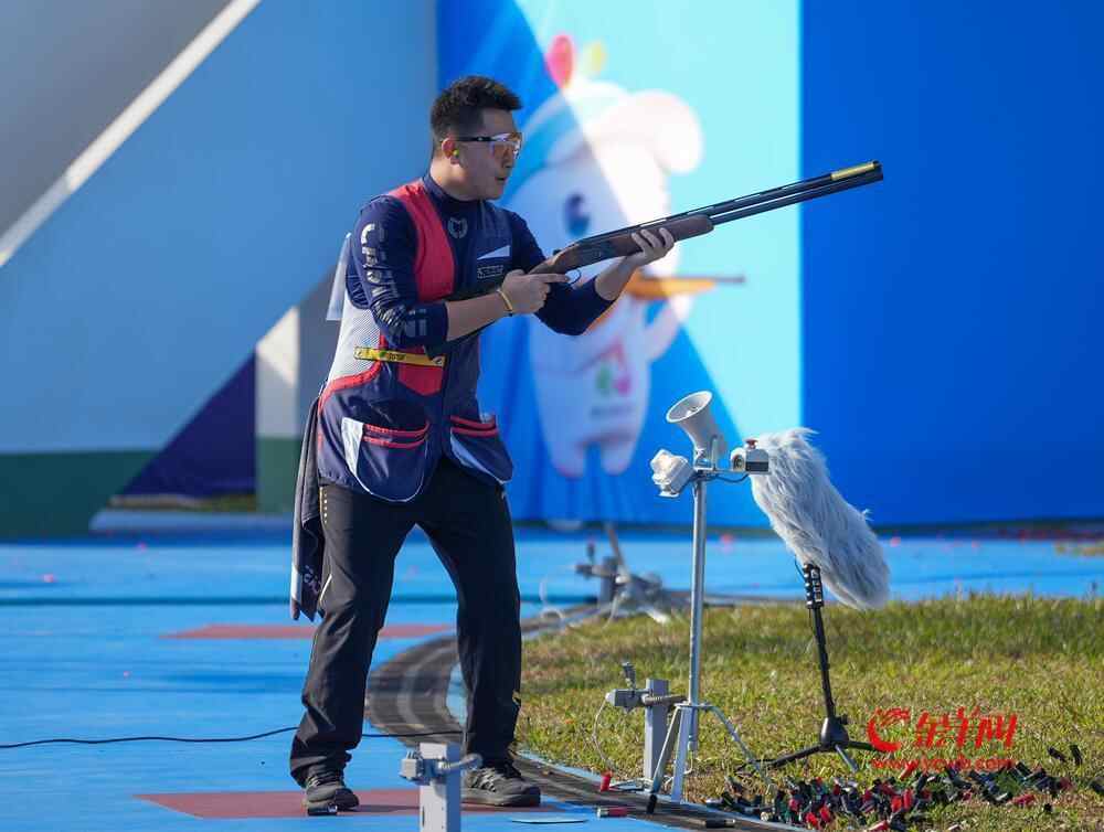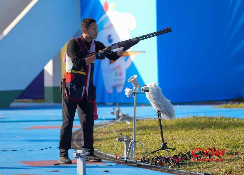 在稍后进行的男子飞碟双向决赛中,江苏选手张煜坤获得金牌,同样来自江苏的杨蒋获得银牌,来自福建的吴亮亮获得铜牌。闯进决赛的广东选手窦旭阳,获得第5名。
