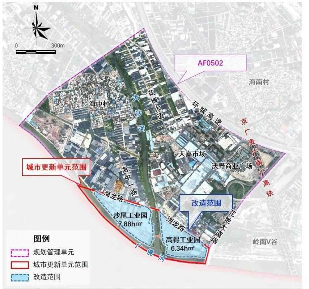 海中村村镇工业集聚区属于广州市第二批村镇工业集聚区更新改造试点项目,试点项目范围14.22公顷。