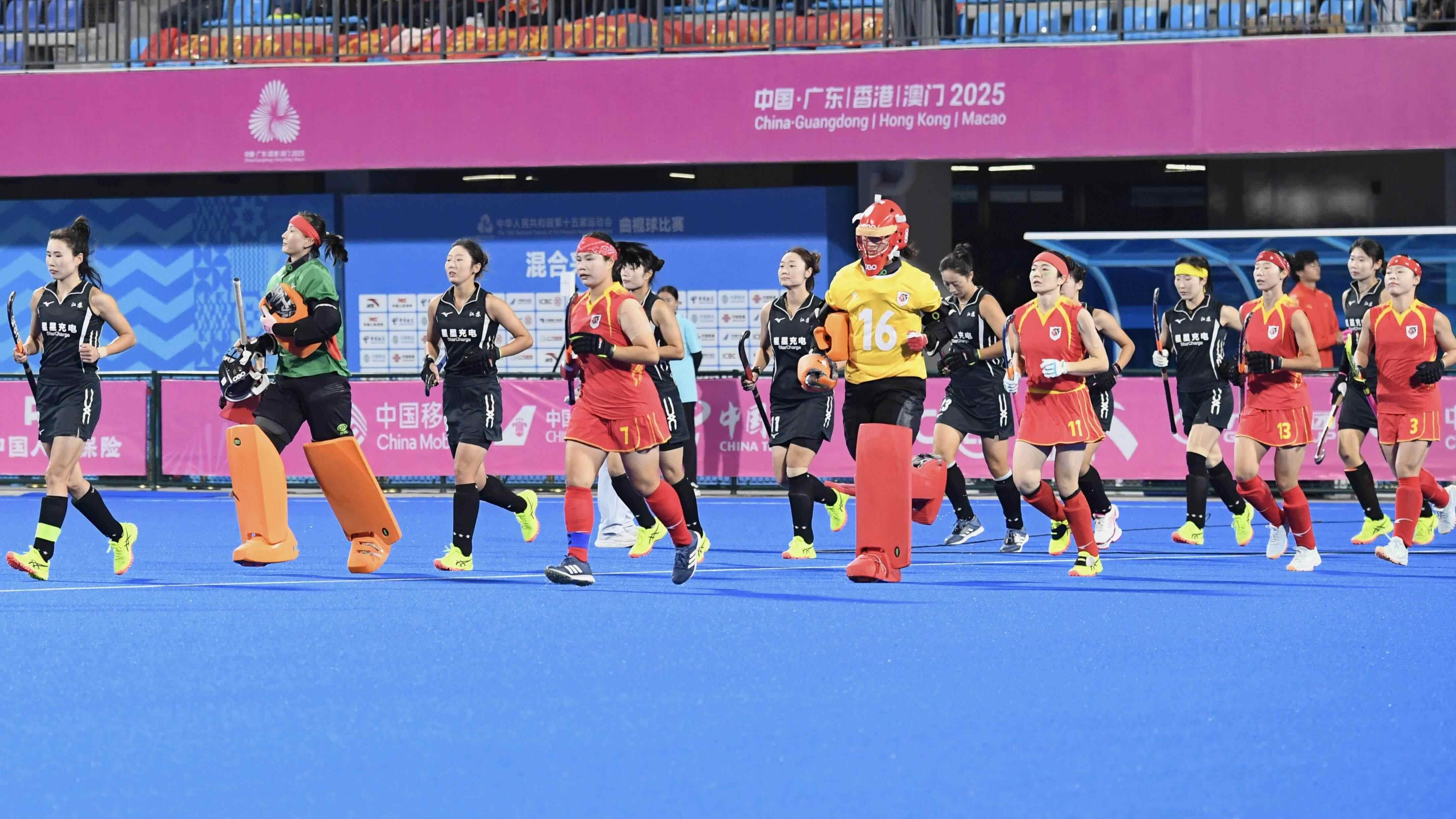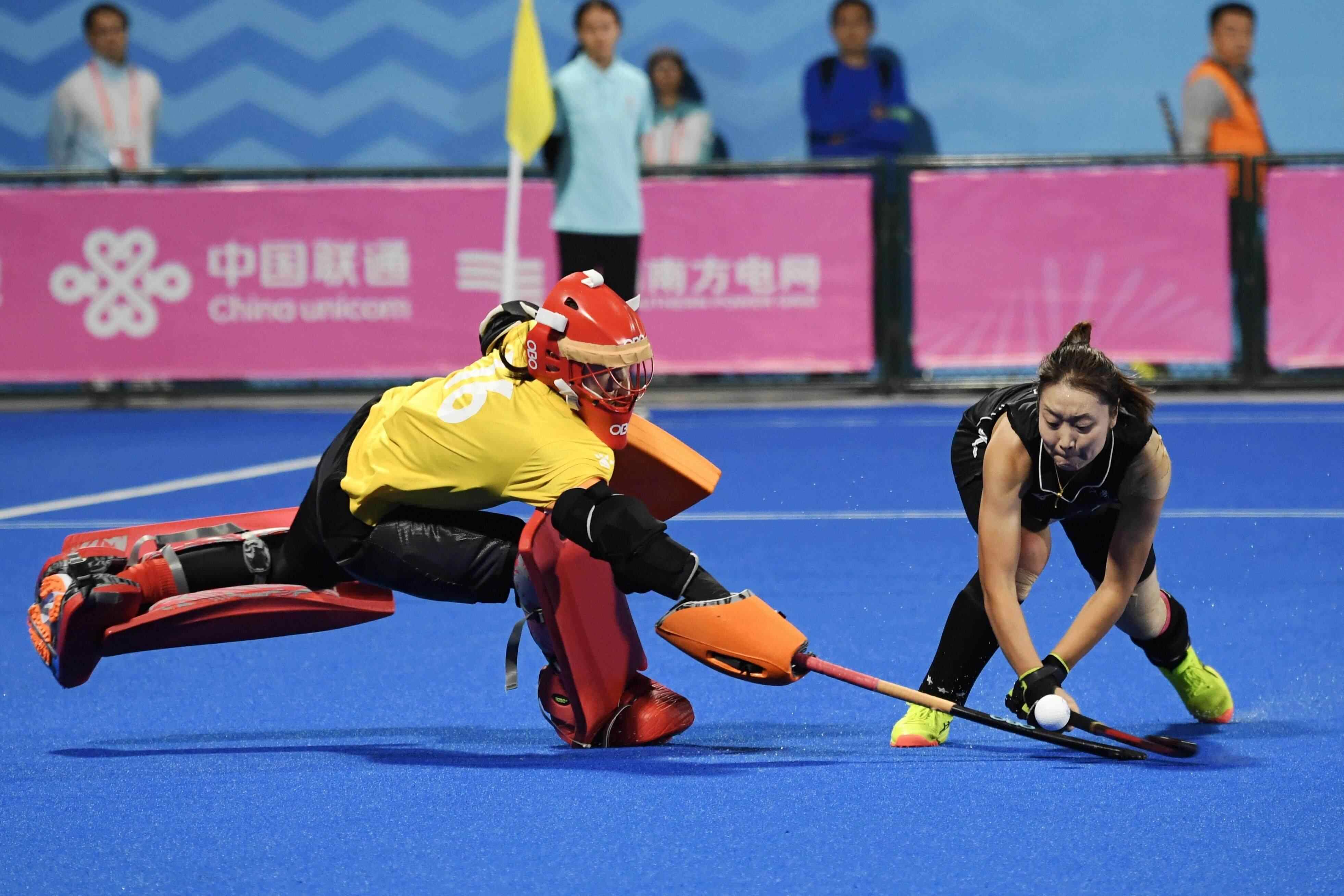 11月14日,十五运会女子曲棍球项目进入最后一个比赛日。云浮市曲棍球场人声鼎沸,现场球迷用震天的呐喊为广东队与江苏队的铜牌争夺战加油助威,球迷们用充气棒加油助威,现场气氛热烈而又有序。广东队与江苏队激战成0比0,经过23米球决胜,广东队以2比4负于江苏队。在女曲金牌争夺战中,四川队以5比0大胜吉林队。
