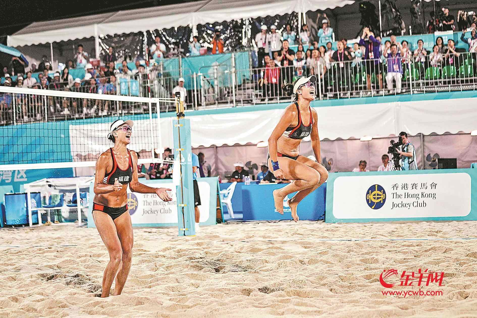 11月8日, 全运会沙滩排球首块金牌在女子项目诞生!第十五届全国运动会沙滩排球比赛女子金牌决赛在香港赛区维多利亚公园举行,经过三局精彩的对决,福建一队夺得金牌,南京体院队获银牌;新疆队战胜江苏队获得铜牌。