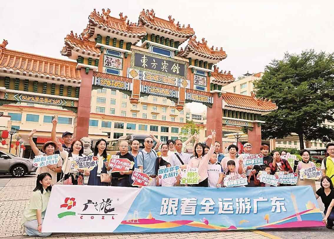 对于不少来粤旅游团队来说,十五运会观赛体验更成为近期“必选项目”。如来自昆明的“粤港澳7天”联游团在体验佛山醒狮、品尝粤菜后,前往奥体中心观看男子双人10米跳台比赛;来自湖南的定制团在4天3晚的行程中更将连看三地赛事——肇庆男子体操、江门花样游泳和广州攀岩决赛,尽显大湾区赛事的魅力。