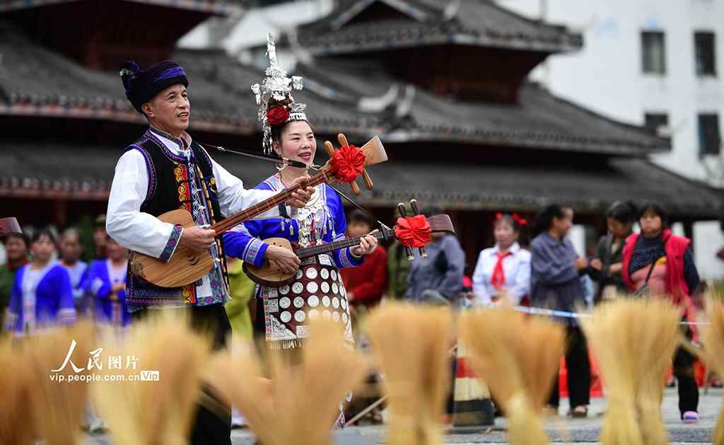 2025年11月7日,广西桂林市龙胜各族自治县平等镇举行一年一度“糯粑节”,当地侗族同胞身着节日盛装欢聚一堂,通过开展民俗巡游、原生态歌舞表演、打糍粑、弹唱琵琶歌、跳多耶等丰富多彩的民俗活动,欢度佳节、庆祝丰收。潘志祥摄(人民图片网)