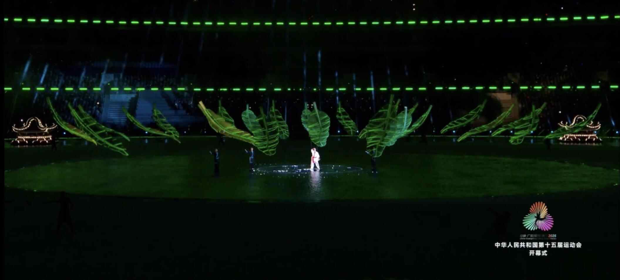 “开幕式的氛围营造并不是符号的堆砌,而是以图形逻辑与光影语言重构岭南精神意象。”许牧川介绍,在本次设计中,团队以“当代表达的岭南文化”为核心理念,从地域精神出发,将岭南的开放、包容与生命力抽象化地融入视觉体系,使设计既具地方识别度,又契合国际传播语境。