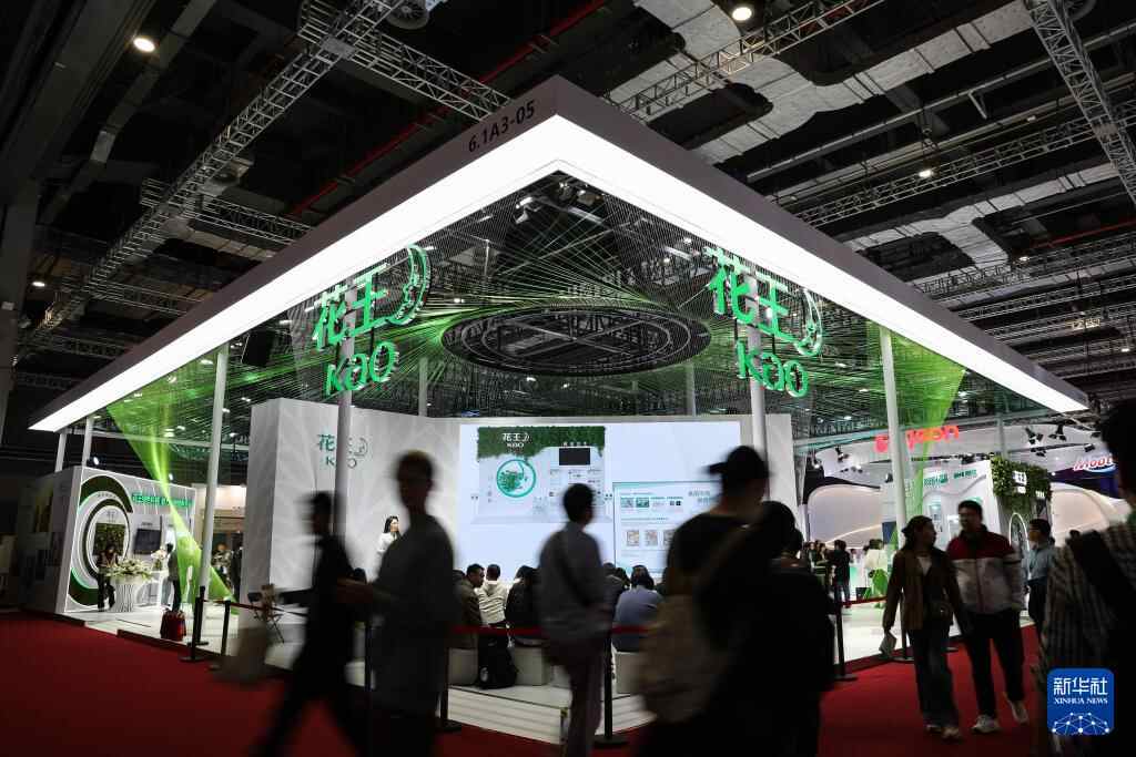 11月7日,参观者走过位于消费品展区的日本花王集团展台。花王集团是进博会八届“全勤生”。