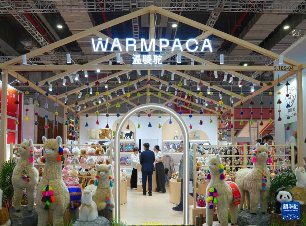 11月5日在消费品展区拍摄的温暖驼展台。温暖驼是进博会八届“全勤生”。