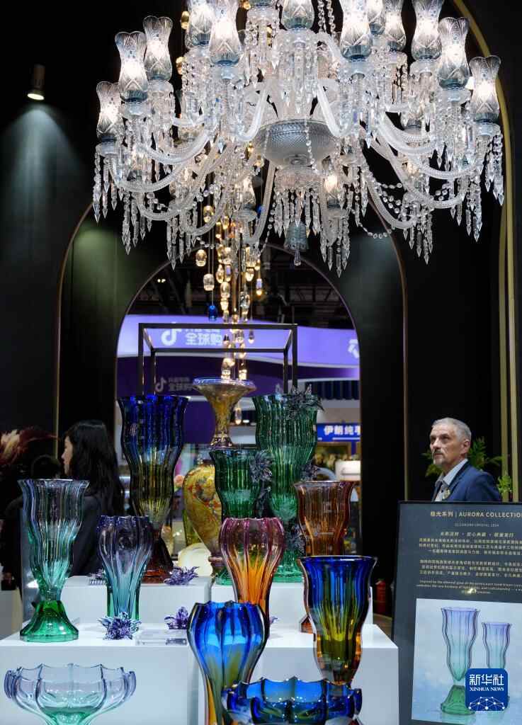 11月5日在消费品展区拍摄的欧若拉水晶展台。欧若拉水晶是进博会八届“全勤生”。